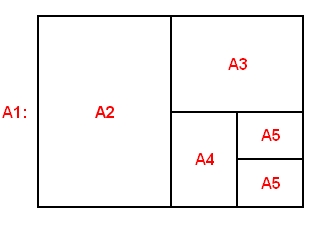 彼はA1の紙を半分に切る. するとA2の紙が2枚出来上がる. 片方を半分に切りA3の紙が2枚出来上がる. 以下繰り返し, A5の紙を得るまで繰り返し, 1枚をその週の最初の仕事に使う.