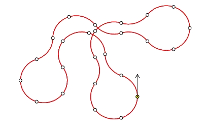 北向きから始めて回の円弧を経て, 閉路を描く道筋は通りあり, 下図はその一例である.